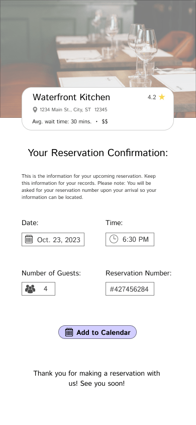 Day 45: Confirm reservation