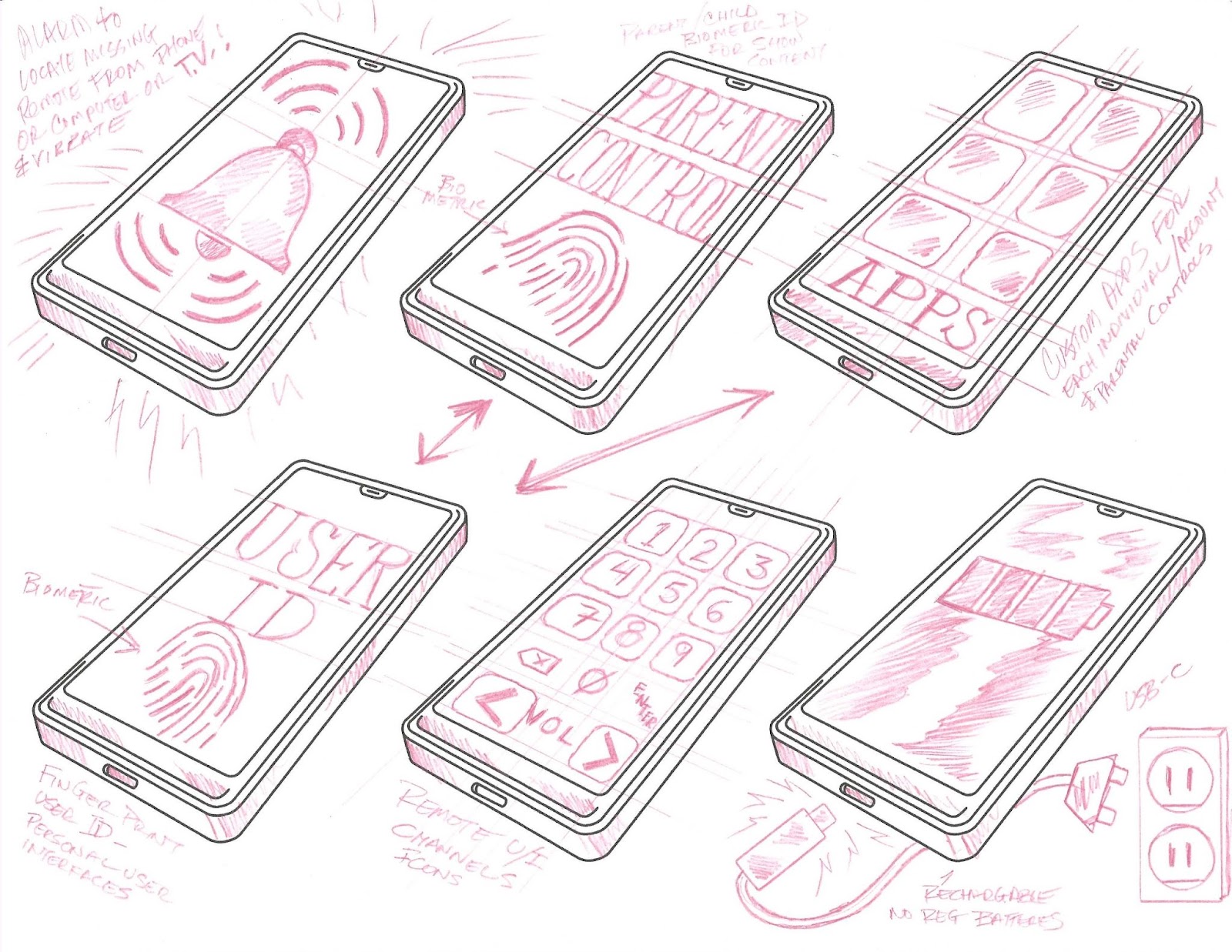 Ideation sketches by Joe Schmoe for the product: Re-Mote.